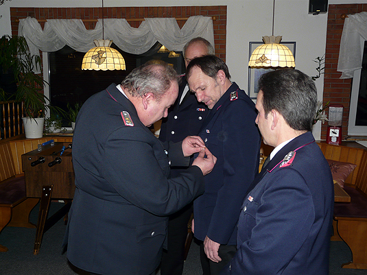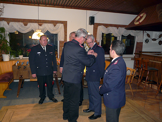 Volker Lischewski wurde vom Gemeindewehrführer Steinberg Gerd-Werner Lorenz für seine 20 jährige Dienstzeit geehrt.